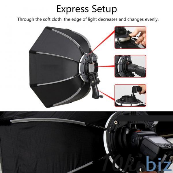 Софтбокс оснащен регулируемым универсальным креплением для накамерных вспышек.